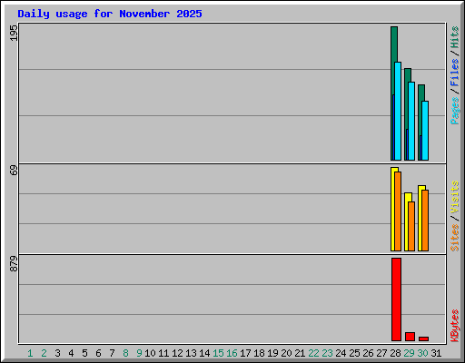 | Day | Hits | Files | Pages | Visits | Sites | KBytes | ||||||